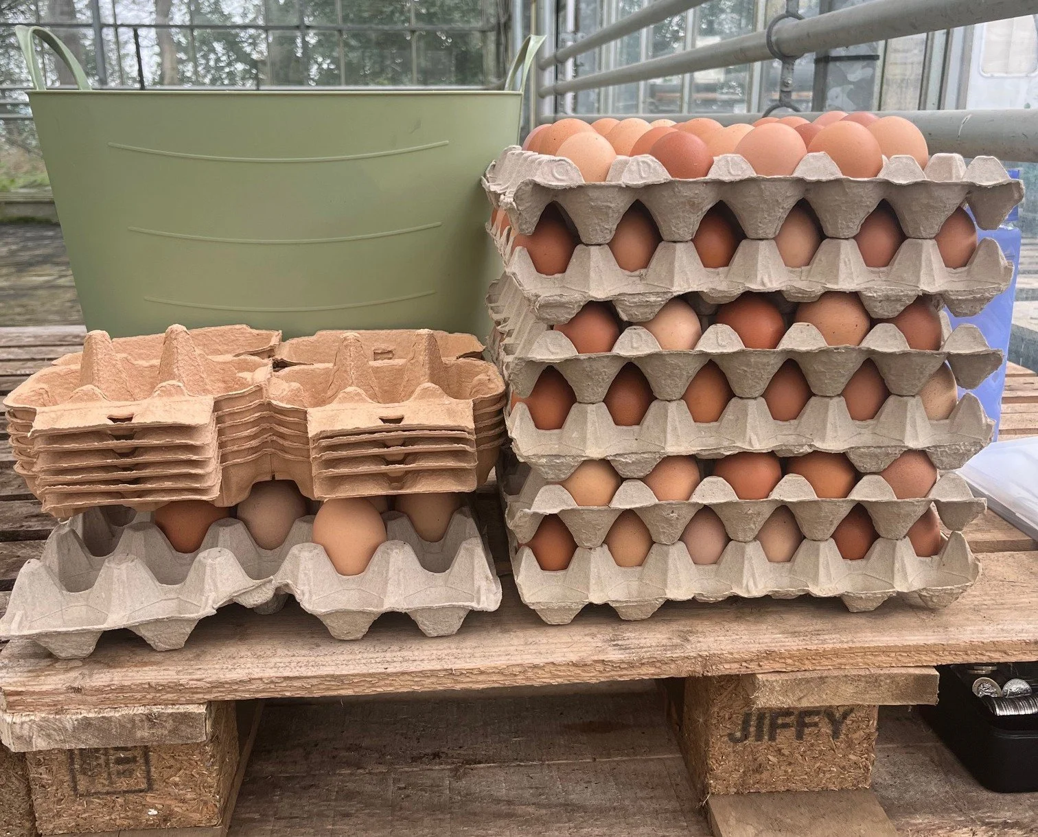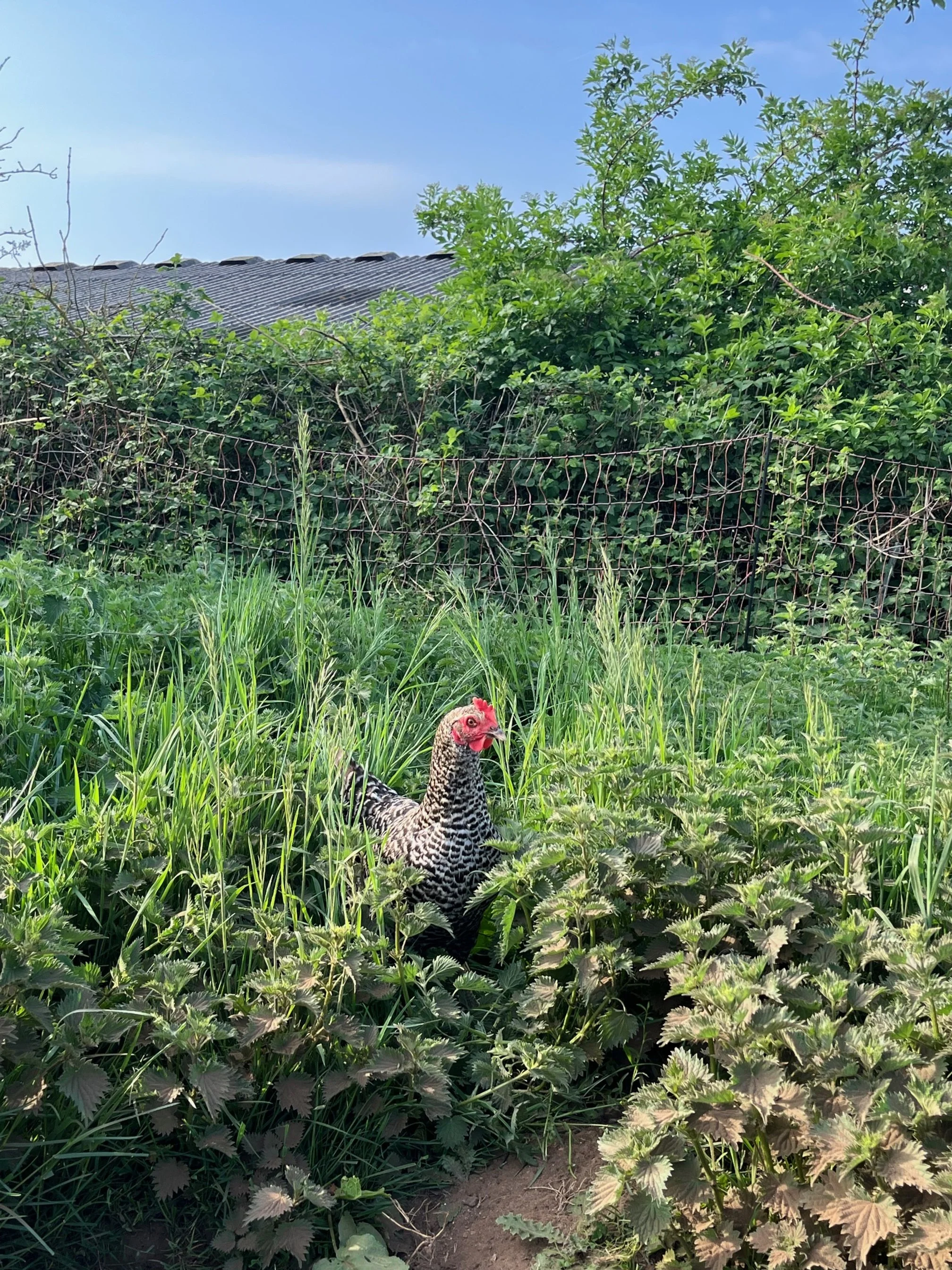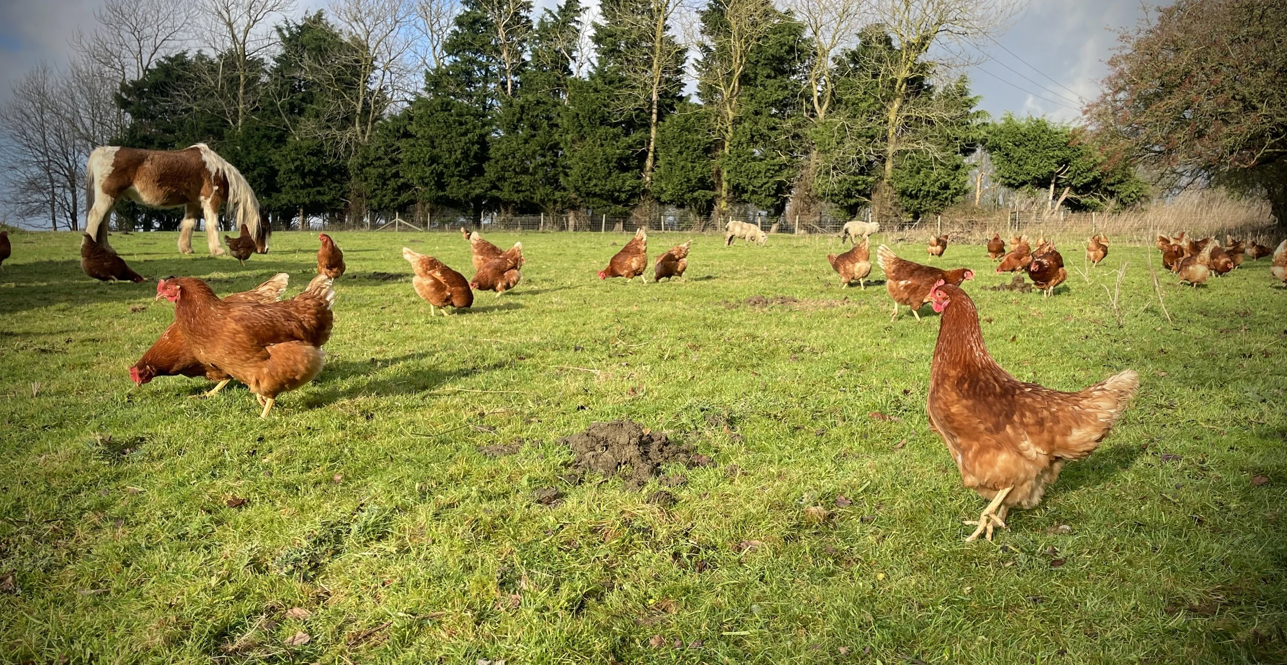 Our hens have access to their hen house throughout the day for shelter and for laying. However unlike battery or barn chickens, we rotate their outdoor access to pasture. This keeps them busy finding more natural food and producing deliciously nutrient-dense eggs, but also helps us better manage and improve our soil health and regenerate our fields. Additive rather than depletive farming.